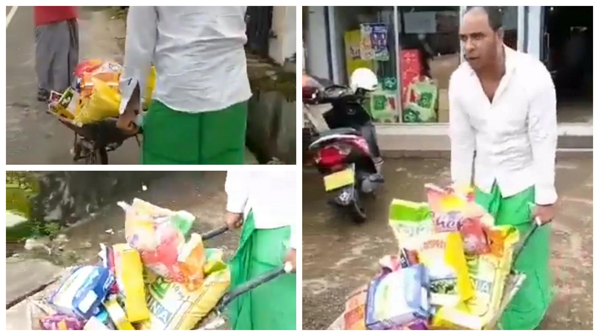 Another person used #Wheelbarrow to transport essentials, a video circulating in Social Media #LKA #SriLanka #COVID19SL #socialmedia @bfonseka pic.twitter.com/JvDL7Z15Y2