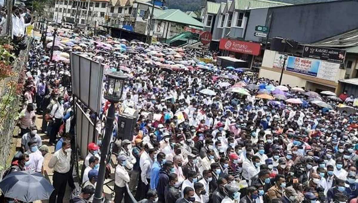 A large crowd had gathered in Nuwara Eliya for the occasion. Health officials had warned people not to hold rallies or other protests under the Corona guidelines.