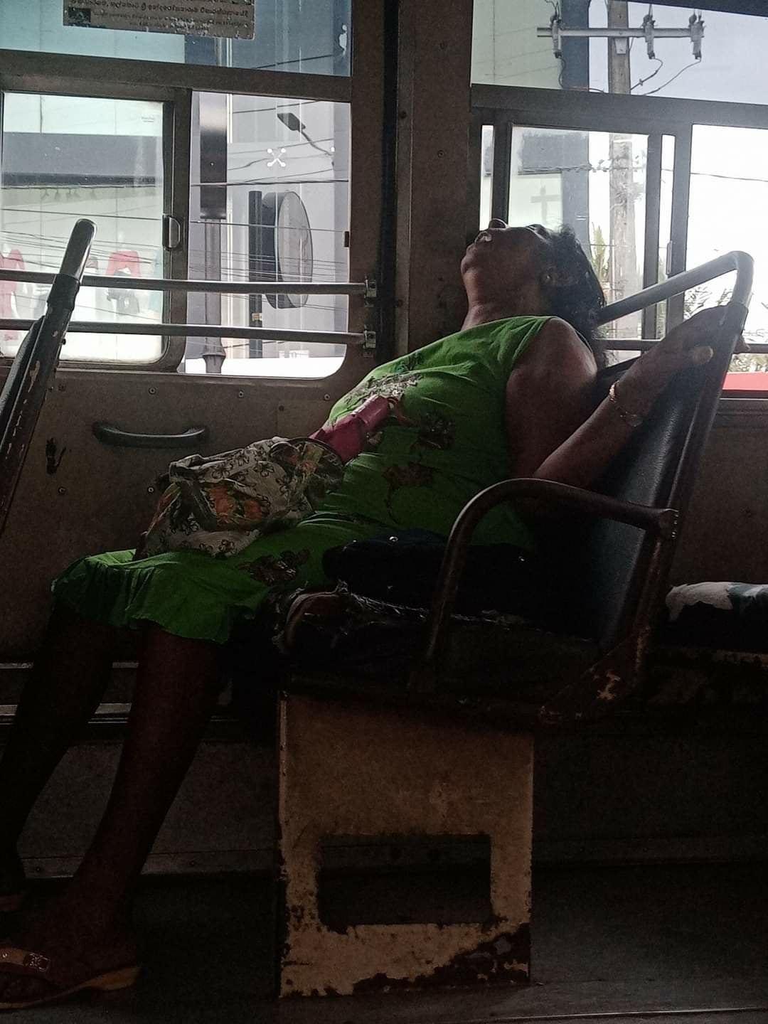 The bus was taken to the Panadura Hospital after the conductor who was skeptical of how the woman was sleeping in the seat, became suspicious took a closer look.