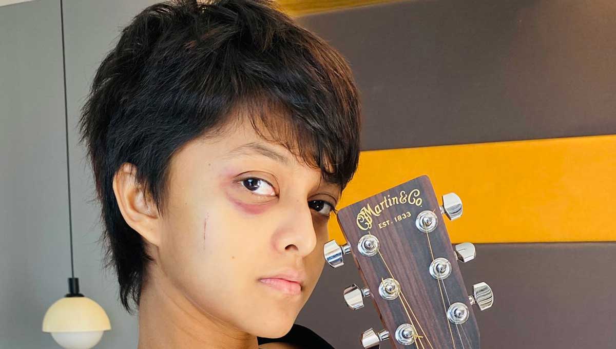 “Show must go on! Had an accident on stage during the last performance. As I was so engrossed in the moment and performing for you I knocked my face on the head of a guitar. I didn’t realize that I bruised my face in the process as well. This is the aftermath.”