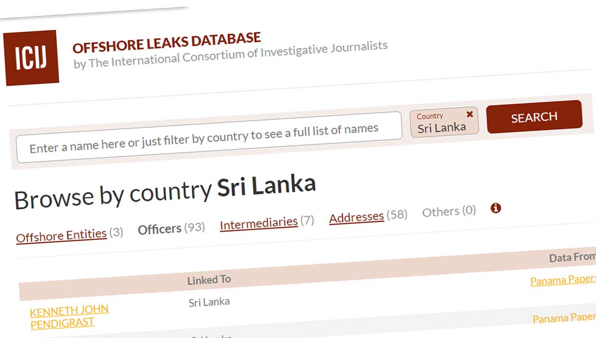 The names of 93 Sri Lankans have been identified by the International Federation of Investigative Journalists. .