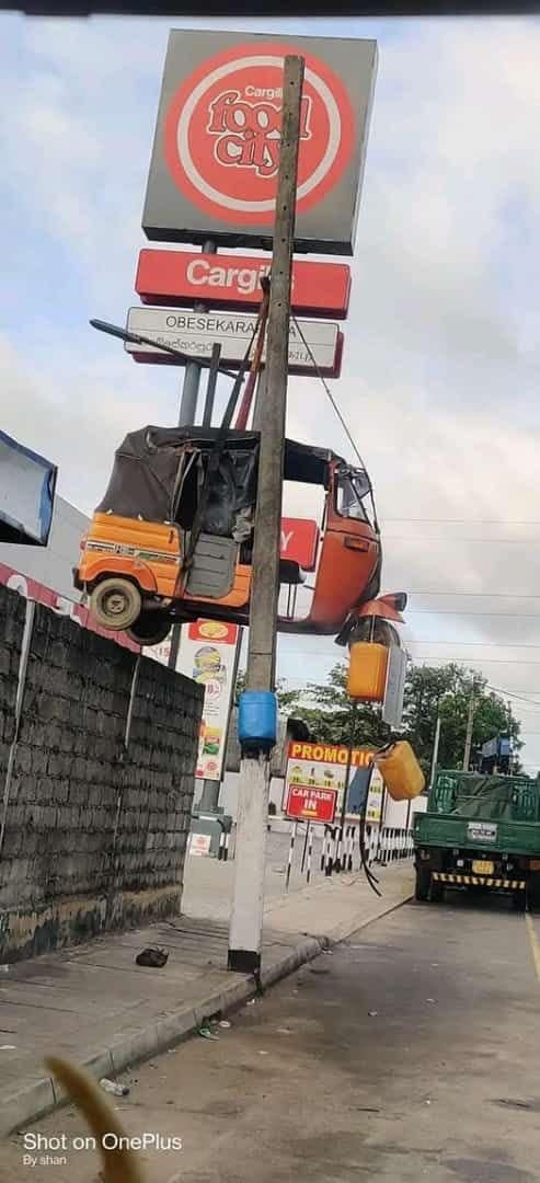 A three-wheeler hanging from a light pole is a punishment.