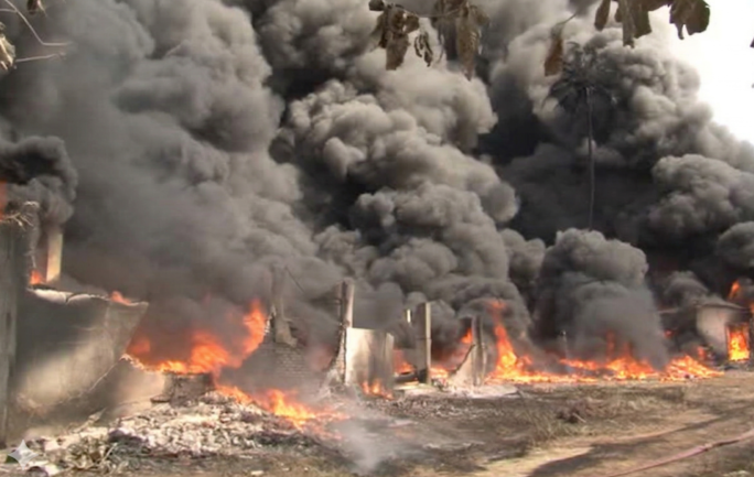 Fire Breaks Out at a Polythene Factory in Wattala
