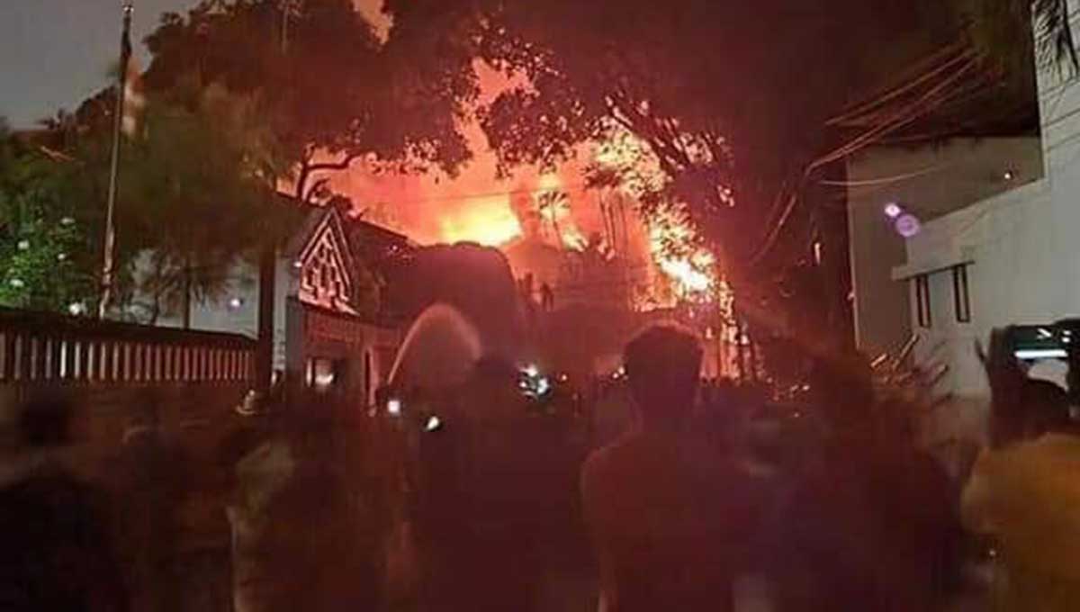 Protesters also entered the private residence of Prime Minister Ranil Wickremesinghe last night and set it on fire.