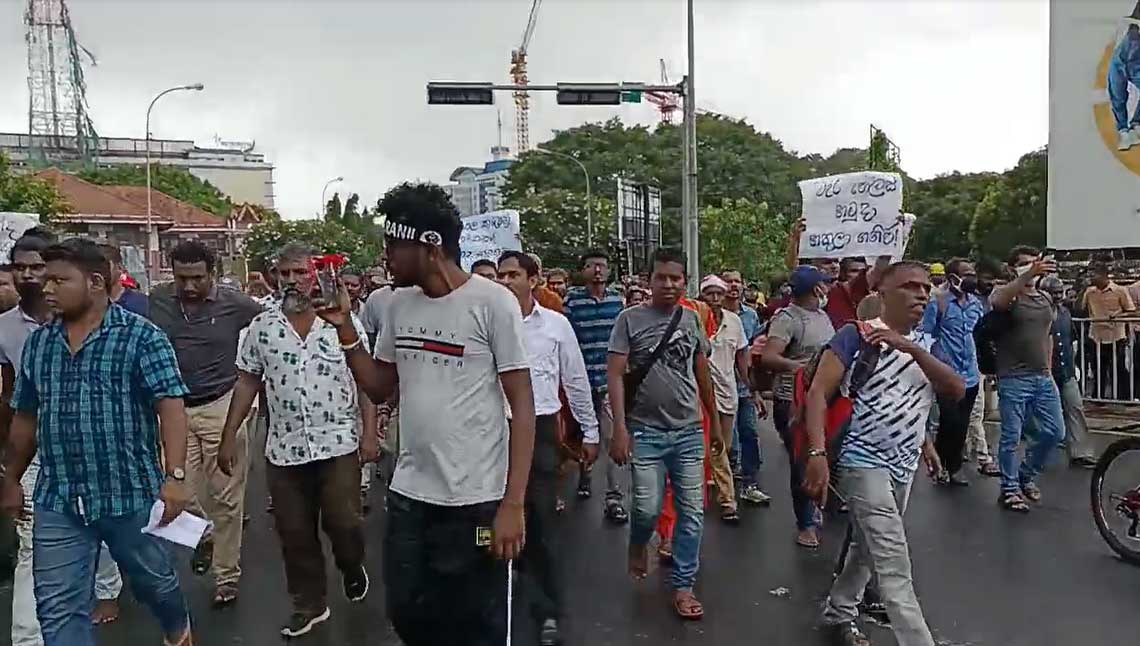The protesters tried to go towards the Galle entrance from the presidential secretariat, but the road was blocked by the army and the police.