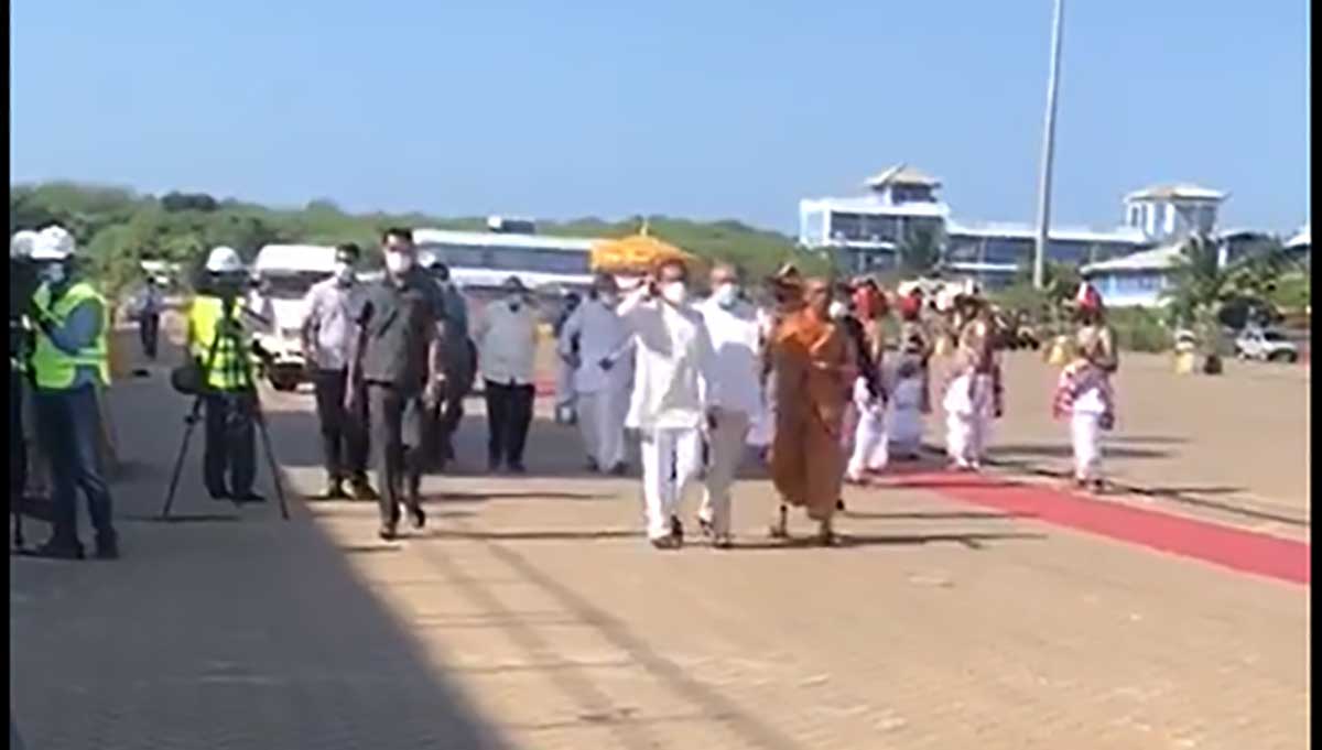 Members of Parliament Vasudeva Nanayakkara, Wimal Weerawansa and Pujya Athuraliye Rathana Thero went to the place to welcome the Chinese ship ‘Yuan Wang 5’ which arrived at Hambantota port this morning.