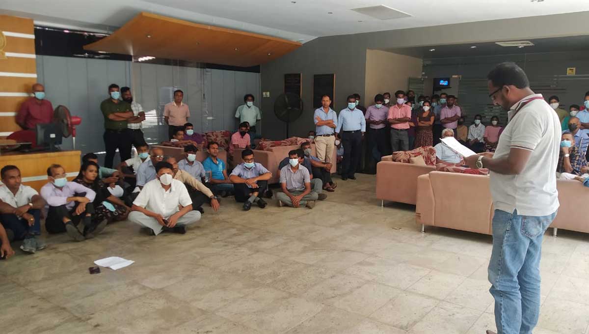 The employees of the Sri Lanka Television Corporation are currently protesting in the lobby of the Corporation due to the fact that they have not yet been paid their salaries for this month (August).