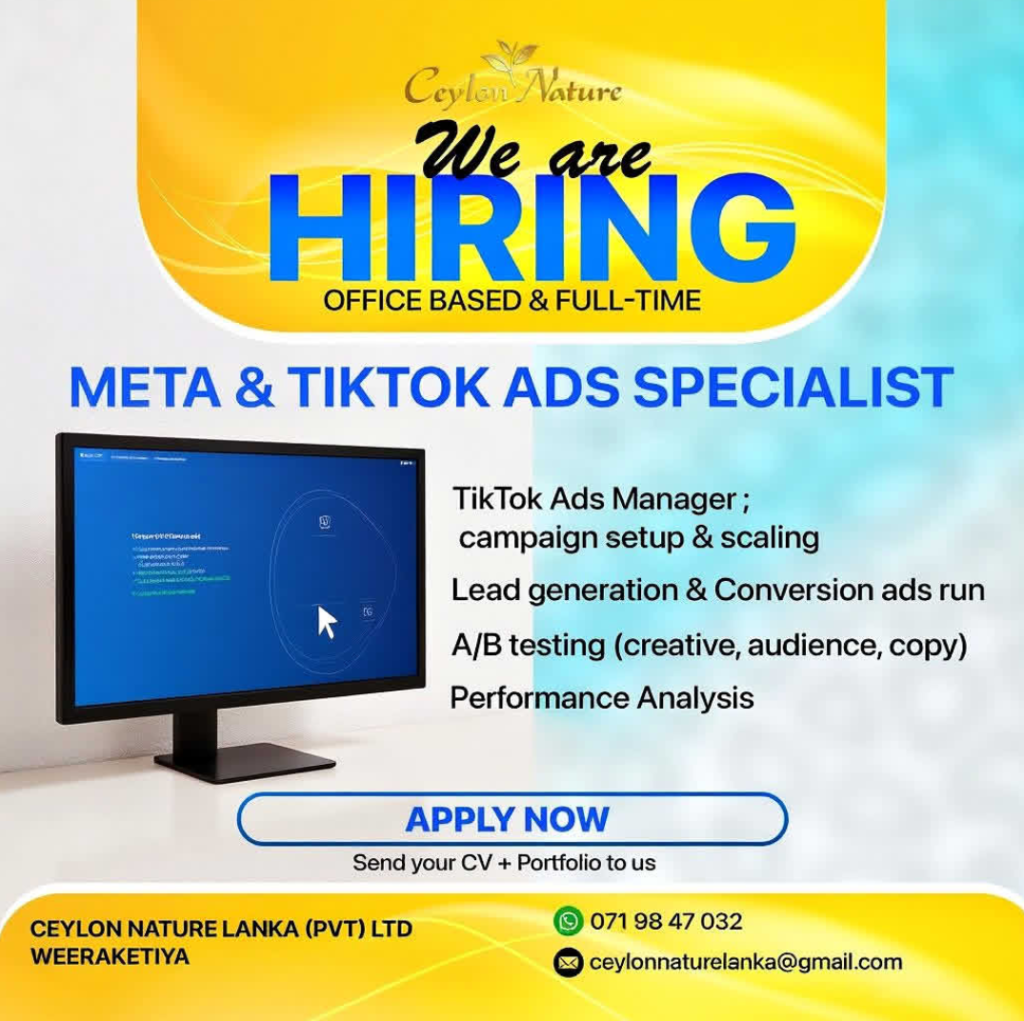 Meta & TikTok Ads Specialist Job – Ceylon Nature Lanka