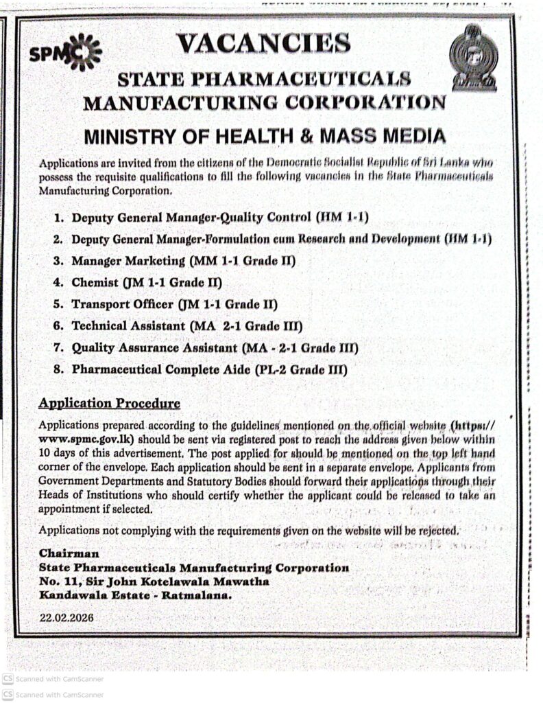 Vacancies - State Pharmaceuticals Manufacturing Corporation (SPMC)